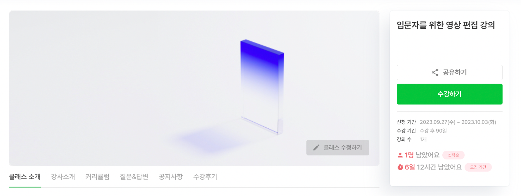 수강 신청을 등록하면 **클래스가 오픈하기 전 수강생이 미리 수강 신청**을 할 수 있습니다.