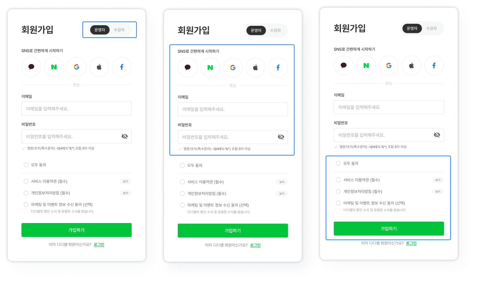 3️⃣ 약관 동의 후, [가입하기]를 진행해주세요