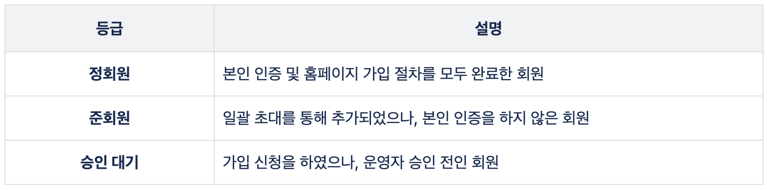 준회원의 경우, 일부 기능 사용에 제한이 있을 수 있으니 \