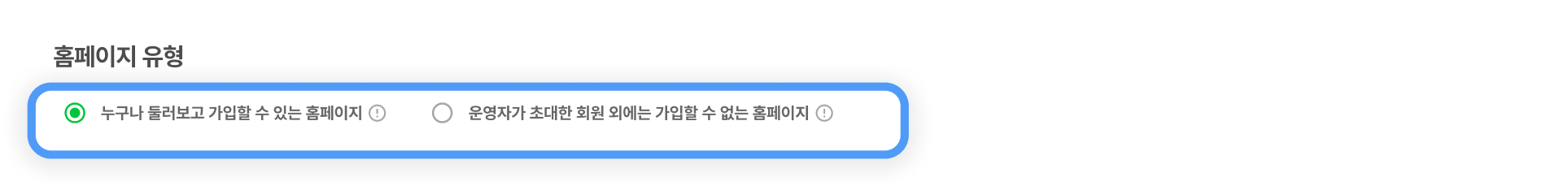 * 별도의 가입 승인 절차 필요 유무에 따라 가입 설정을 다르게 할 수 있어요.