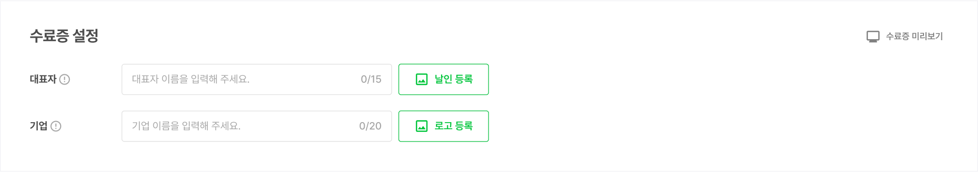 * 수료증에 표시될 대표자의 이름과 학원 이름을 입력해 주세요.